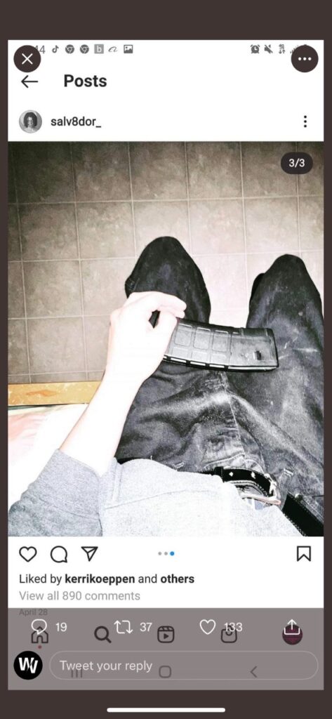 Ramos tenía una cuenta en Instagram (@salv8dor_) donde publicó un par de historias donde mostró las armas de fuego.