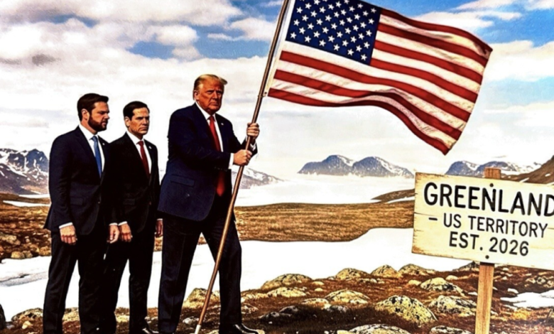 A través de Truth Social, difundió la imagen en la que aparece plantando la bandera de EU en territorio groenlandés, acompañado por Marco Rubio y J. D. Vance. En la escena se lee un cartel con la leyenda “Groenlandia, territorio estadounidense”, con 2026 como fecha de entrada en vigor.