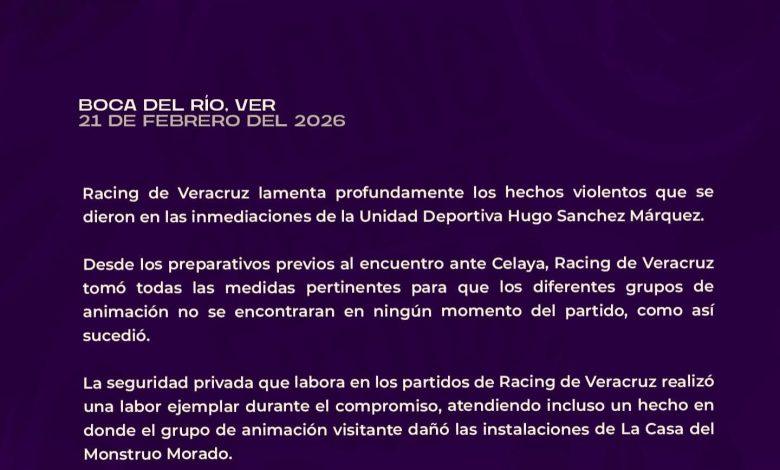 También a través de un comunicado oficial del Club Racing Veracruz, aseguraron que se tomaron todas las medidas pertinentes para que los grupos de animación no se encontraran en el partido, además de que la seguridad privada que labora realizó un trabajo “ejemplar”.
