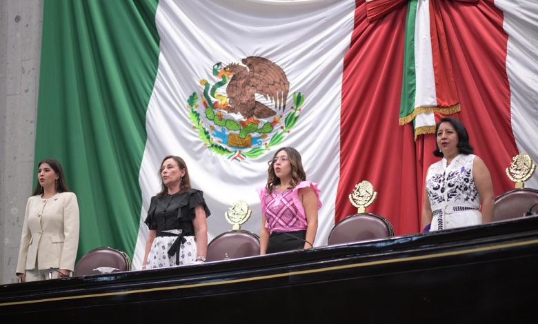 En el Recinto Oficial del Palacio Legislativo y con la asistencia de integrantes del gabinete estatal, presidentas y presidentes municipales, representantes de organismos autónomos y de organizaciones civiles y público en general, la presidenta de la Mesa Directiva, diputada Naomi Edith Gómez Santos, instruyó a las comisiones de cortesía recibir a las titulares de los poderes Ejecutivo y Judicial y a la condecorada.