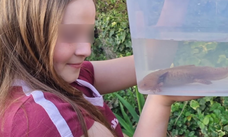 Niña encuentra ajolote mexicano bajo puente en Reino Unido