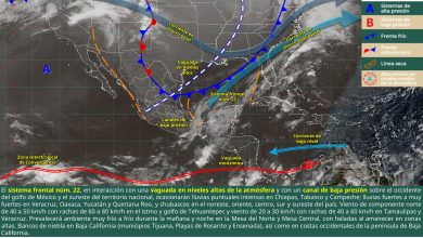 Para hoy, el sistema frontal núm. 22 se extenderá sobre el norte del golfo de México y noreste del país, en interacción con…